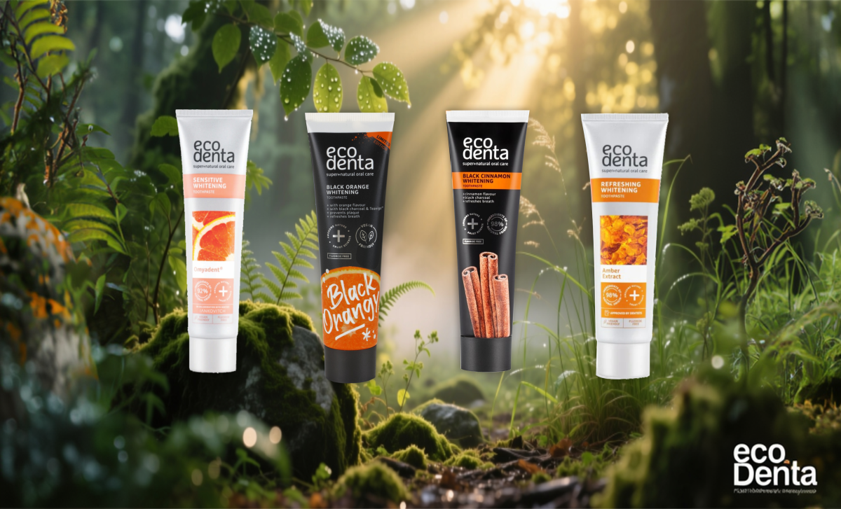 La Línea Natural Sin Flúor de Ecodenta utiliza ingredientes naturales como hidroxiapatita de calcio, xilitol, carbón orgánica, sílica, extractos de té verde, naranja y canela.