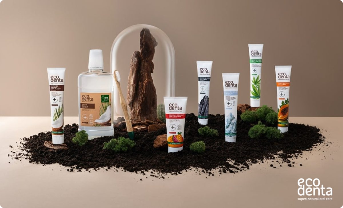 La Línea Orgánica sin flúor de Ecodenta es un estándar de cuidado bucal orgánico. Cada producto tiene un certificado ECOCERT que garantizan ingredientes orgánicos y envasados en materiales ecológicos y reciclables.